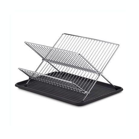 Trending Black Folding Dish Rack / Holds up to 23 dinner plates, with loops for cups, glasses and stemware and room below on the shelf for accessories, pots and pans. Holds 23 dinner plates and separate holders for glasses or mugs also accommodates stemware. Black Folding Dish Rack : Black folding dish rack perfect small spaces.