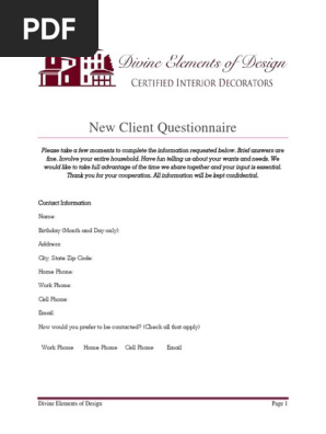 Trending Commercial Interior Design Client Questionnaire / Interior design client questionnaire studioofinteriordesign newclientquestionnaire pdfpage 1 of 12 new client questionnaire please take a few moments to complete the information requested below brief answers are fine use the back of these sheets if you would like to interior design client. An interior design questionnaire saves you time, makes you more profitable and gives your clients what they really want. Commercial Interior Design Client Questionnaire : How many people do you expect to be living in your house 10 years from now?